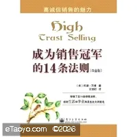 《成为销售冠军的14条法则(白金版)》主要内容简介:长久的销售奇迹只有在客户对你的高度信任的情况下才会发生。世界顶级销售大师托德·邓肯告诉你长久保持高销售业绩的冰山法则、巅峰法则、求爱法则等14条法则,帮助你成为一个想客户之所想、急客户之所急的人。无论你从事什么行业,或者担任什么样的销售职务,《成为销售冠军的14条法则(白金版)》的14条实战法则,将为你打开一扇通往新的思维和生活方式的大门,让你超越你的梦想,成为销售冠军。