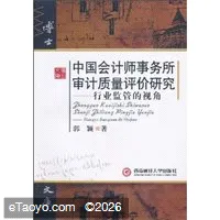 《中国会计师事务所审计质量评价研究:行业监管的视角》内容简介:会计师事务所是一种特殊的企业组织形态,其审计质量也因其“产品”的特殊而存在着特殊性。国内这几年几乎还没有对会计师事务所审计质量的评价进行系统的研究,该著作在理论与实务的双重需求下以行业监管的视角研究会计师事务所审计质量的评价尤为可喜。这部著作是作者在博士学位论文的基础上反复斟酌修改而成,整合了多学科相关理论与方法,恰当地拓展了其研究范围,深化了其研究内容,是一部具有较高学术价值并对实践改革具有重要启示和指导意义的专著。其研究成果既有利于我国注册会计师行业的发展,又有助于拓展现代审计的研究视野、推进现代审计理论与实务的发展,并充分展示出现代审计学所具有的理论价值与实际意义。