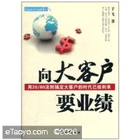 《向大客户要业绩:用20/80法则搞定大客户的时代已经到来》:20/80法则:又被称为最省力法则。这是一条神奇的法则:结果、产出或报酬的80%取决于20%的原因、投入或努力。这个原理经过多年的演化,已演变成当今管理学界所熟知的法则,即80%的公司利润来自20%的重要客户,其余20%的利润则来自80%的普通客户。所以,这个法则提醒我们,要想在有限时间内拿到大单,取得最好的业绩,就要发现销售成功的秘诀——抓住大客户。 作者简介