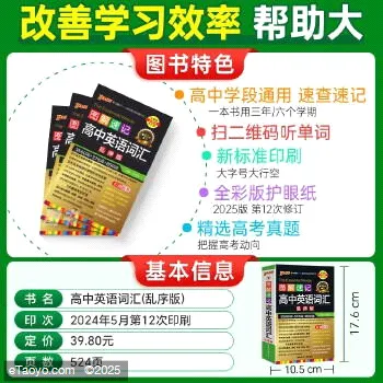 科目:高中英语词汇 乱序版(含红膜) 高中英语语法 考频版(无红膜) 高中英语词汇 正序版 高中英语同步词汇 版 高中思想政治 版 四级词汇 乱序版 图解全析高中文言文 版 高中地理 新教材 新高考 高中英语短语与句型 高中物理 新教材 新高考 高中历史 版 高中数学 高中古诗文 新教材 新高考 版 高中生物 高中化学 新教材 新高考适用学龄段:高中通用