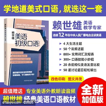 本书是赖世雄教授为美语初级学习者量身打造的口语提升指南,以科学编排助力读者稳步突破基础口语瓶颈。全书划分大主题分类,精选课超实用内容,聚焦常见生活对话与短文场景,通过情境式学习设计,让初级学习者轻松理解语境、融入表达,降低口语入门门槛。内容编排层层递进:课前热身环节帮你快速进入学习状态,同步积累单词短语与实用词句,轻松巩固语言基础;特别设置“换句话说讨论题目”板块,不仅拓展表达维度,更能训练逻辑思考能力,双管齐下打造超强沟通力。此外,全书配备美籍外教专业朗读音频,扫码即可收听,随时随地模仿地道发音、练习口语表达,为初级学习者提供高效、便捷的美语口语提升方案。