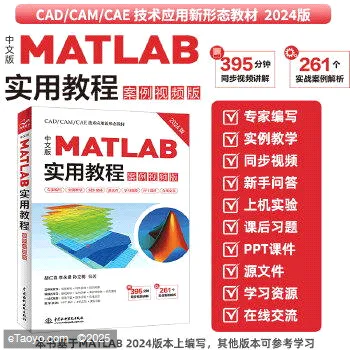 《中文版实用教程(案例视频版》一书共包含章,详细介绍了所有常用知识点,具体内容包括用户界面、帮助系统、基础知识、向量与多项式、矩阵运算、二维绘图、图形标注、三维绘图、程序设计、矩阵分析、符号运算、数列与极限、积分、方程求解、微分方程。为了进一步提高读者的使用水平,本书还赠送了个大型工程应用分析实例和大量中小实例,详细介绍了在闭环传递函数的响应分析、单摆系统振动系统仿真、控制系统的稳定性分析、求解时滞微分方程组、数字低通信号频谱输出、推测世界人口、希尔伯特矩阵运算设计等方面的具体使用方法和技巧。基础知识和经典案例相结合,知识掌握更容易,学习更有目的性。