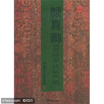 颜真卿(—)唐代书法家。字清臣,京北万年(今陕西西安)人;一说临沂(今属山东)人。曾任平原太守,官至吏部尚书,太子太师,封鲁郡公,世称“颜平原”、“颜鲁公”等。书法初学褚遂良,后请教张旭,深悟笔法,参用篆书笔意写楷书,特重中峰,真书笔力弥满,端庄雄伟,气势森严。行书遒劲郁勃,阔达自在,尤其《祭侄文稿》誉为天下第二行书。书风明显别于二王及初唐诸家,对中国书法艺术的发展有重大影响,世称他的书法为“颜体”。 所编《裴将军诗》《送辛子序》及《送刘太冲序》是选自宋拓《忠义堂帖》,尤以《裴将军诗》帖,篆隶并用真草相兼,运笔结势有虎啸龙腾之妙。《送辛子序》,作者大历十二年()二月初一日,书于金陵。全篇行草,用笔时出道劲,杂以流丽,一气呵成,后人称“极其劲秀’’是颜体中风格别异的作品。《送刘太冲序》写于大历七年()春,运笔楷行相兼,浑厚强劲,精力,可谓得金钗股、锥画沙之笔意。清汪由敦在帖后跋云:“其神气飞动,于庄严之中露峭劲,风骨较家廟碑专尚严整者为优,”