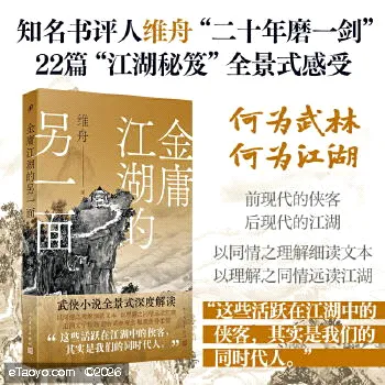 《金庸江湖的另一面》是作家维舟创作的一系列关于金庸小说的文化随笔,分为三辑:“金庸叙事学”“武林的观念”“江湖社会学”。“金庸叙事学”一辑借用西方叙事学理论来解读金庸小说中的文学母题,揭示了这些叙事元素如何推动情节发展和塑造人物形象;“武林的观念”一辑探究金庸小说中的价值取向、身体观念以及审美哲学;“江湖社会学”一辑则解构金庸江湖世界中的人情世故,探讨武林团体的组织形态、社会交往规则以及知识产权等问题。通过这三个维度的深入剖析,维舟不仅展现了金庸小说的丰富内涵和艺术魅力,还为读者提供了一把理解金庸武侠世界的钥匙,让读者可以从多维度领略金庸小说的魅力。