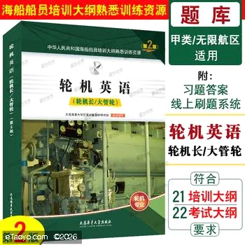 2022第2版轮机长大管轮题库 轮机英语 附答案 电子题库 甲类无限航区适用 海船船员培训大纲熟悉训练资源海船船员适任考试同步练习 9787563243884