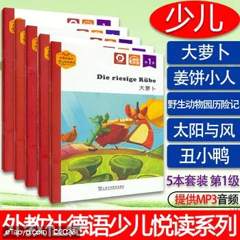外教社德语少儿悦读系列 第1级套装5本 大萝卜太阳与风 野生动物园历险记 姜饼小人丑小鸭 扫码音频 少儿德语阅读书儿童德语学习书 春日喧和 9787810952392001939