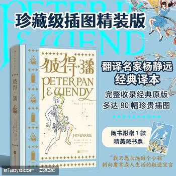 “彼得·潘综合征”已经被正式收录进英语词典,也引发心理学界的重要讨论。在现代生活的快节奏和重压下,成人将渴望再次翻开《彼得·潘》,回到“精神老家”永无乡,重签一份《不长大公约》。◎文学史上著名的“长不大的男孩”,最令人心碎的成长寓言一个会飞的男孩,一座神秘的梦幻岛,一场永不谢幕的冒险有这样一个传说:夜深时分,只要你跟着彼得·潘向窗外飞去,会一路飞到“永无乡”,这岛上有海盗、仙女、美人鱼……这片土地尽是自由,幻想的一切皆能实现。岛上迷失的男孩们总会长大,只有彼得·潘永远一口乳牙,拒绝成人。他的“永无乡”乐园只为孩子们开放。这部出版于年的英国文学瑰宝之作,与《爱丽丝梦游奇境记》并列为维多利亚爱德华时期儿童文学双峰,影响了后世如“哈利·波特”系列、电影《》等无数奇幻作品。《哈利·波特》作者罗琳,在伦敦奥运会开幕式上倾情朗读《彼得·潘》;流行音乐巨星迈克尔·杰克逊,一生挚爱《彼得·潘》:“在我心里,我就是彼得·潘。”《彼得·潘》被多次改编成舞台剧、动画、电影等作品,如斯皮尔伯格执导的《铁钩船长》、迪士尼推出的自编续集电影《重返梦幻岛》以及年环球影业的电影版《小飞侠彼得·潘》。彼得潘创作的初衷,是作者巴里为心爱的孩子写就的一部儿童幻想作品,可出版后却受到了世界范围内几代成年读者的热切追捧。每个大人心里,都住着一个不想长大的彼得·潘。博尔赫斯曾在信件中坦言:“我书架上的《彼得·潘》比《神曲》更破旧。”罗琳在哈佛演讲引用:“每当写作陷入瓶颈,我会重读彼得·潘那句‘死亡是场盛大冒险’,它比任何哲学著作更能解构恐惧。”★我是少年,我是快乐,我是刚出壳的小鸟!我是彼得·潘!★所有的孩子都要长大的,只有一个例外。★你只消想些美妙的、奇异的念头,这些念头就会把你升到半空中。★人一长大,就忘了怎么飞了。彼得·潘揭露的是那些关于拒绝长大、恐惧衰老、渴望飞翔又惧怕坠落的永恒困境。“彼得·潘综合征”已经被正式收录进英语词典,也引发心理学界的重要讨论。在现代生活的快节奏和重压下,成人将渴望再次翻开《彼得·潘》,回到“精神老家”永无乡,重签一份《不长大公约》。◎ 著名翻译家杨静远经典译本,译笔俏皮轻灵,将英式幽默与中文诗性熔于一炉杨静远版是中文世界公认的《彼得·潘》经典译本,她的文字轻灵、俏皮、传神,透着一股活泼泼的灵气,同时兼重英国维多利亚时期的雅趣和古典。“永无乡”的隽永诗意,“虎莲公主”的美艳野性,“叮叮铃”的纤细狡黠都已从译名体现得淋漓尽致。杨静远在采访中称“极爱《彼得·潘》”,即使是在经历白内障煎熬,视力严重受损的情况下,仍靠着丈夫一句一句念原文,翻译出了这部经典作品,传神地再现了巴里笔下永无乡的瑰丽与成长的微妙哀伤。她曾说,要写出这样经典的角色,作者“得喜欢孩子,理解孩子,自己得是一个大孩子,或老小孩”;同样,翻译时,她亦怀着赤子般热忱天真之心,将童稚世界的无穷魅力带给读者。◎年经典原版幅插图完整收录,重现黄金时代的梦幻岛魔法令人惊艳的手绘字体和版式设计,被《插画艺术史》盛赞“可从画里听见金粉洒落声”黄金时代艺术家赫德森珍贵原版,以装饰艺术风格与新浪漫主义水彩闻名。她的画风空灵而优雅,色彩柔美,透出新艺术运动余韵。书中完整收录年经典原版幅插画,钢笔与水彩交织的复古画风,每一页都是可装裱的艺术品。◆ 《插画艺术史》盛赞:赫德森的画笔让彼得·潘真正飞出了书页,如果你相信仙子存在,一定能从这些画里听见金粉洒落的声音。◆ 在《彼得·潘》中,插画以装饰艺术风格尽显奢华:版式设计、字体排印与手绘字体皆精妙绝伦。除整页插图外,章节标题与图注文字均由其亲笔题写,并饰有令人惊艳的章首与章尾图案。◆“太阳射出一百万支金箭”将永无岛铸成黄金色的辉煌气度;人鱼似明珠浮出火烧般礁湖的绮丽壮美;黑色海盗船穿过迷雾和虎视眈眈的鳄鱼的神秘哥特风;“遗失的孩子守望着彼得,海盗守望着遗失的孩子,印第安人守望着海盗,野兽守望着印第安人”如珠玉般连缀成环的巧妙设计……故事中的华彩片段,均被一支妙笔绘出,充满梦幻色彩。◎珍藏级烫金圆脊精装,赠精美藏书票书封:书封由金水纹纸和木棉纸拼接,柔和粉蓝色与米黄色相间,加上特种纸张独一无二的纹路,复古典雅;书名和图案烫金点缀,闪烁如永无岛的繁星;书脊素雅条纹,尽显英式古典气质,天际线尽头驶来胡克船长的海盗船。内文:圆脊锁线精装,采用原色优质胶版纸印刷,柔韧敦厚,画面细腻光润,可度平摊,提供舒适阅读体验。藏书票:附赠水纹纸藏书票一张,图样采用原版封面绘图,孩子们随彼得潘飞出窗外,奇遇从此刻开始。