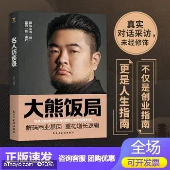 《名人访谈录》以饭局这一 中国特色的社交场景为切口,深度聚焦企业家群体的生存哲学与破局之道。本书精选节目对谈精华,收录位新经济时代领军人物的深度对话,涵盖互联网科技、消费升级、智能制造、文化创意等多元领域,通过主持人大熊犀利而温情的提问,呈现企业家在战略决策、组织管理、资本博弈及危机应对中的真实思考。