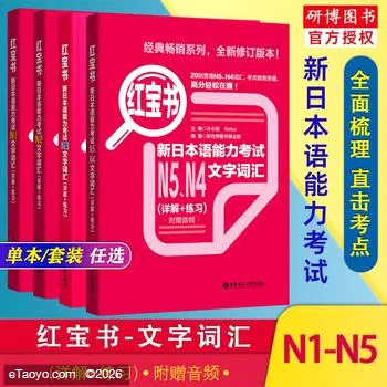 红宝书文字词汇N1(详解 练习) 日语红宝书文字词汇N1-N5新日本语能力考试N1N2N3N4N5红蓝宝书1000题蓝宝书文法n5n4n3n2n1日语真题模拟绿宝书听解日语人门教材 正版速发 包 9787562829935