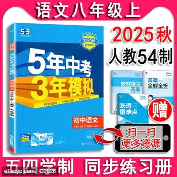语文八年级上册人教版54制 初中通用 五四制2025年秋新版初中同步六年级上册七八九年级下6789鲁教版山东专用语文数学英语物理化学生历地5年中考3年模拟曲一线书练习册 正版速发 978730418888313