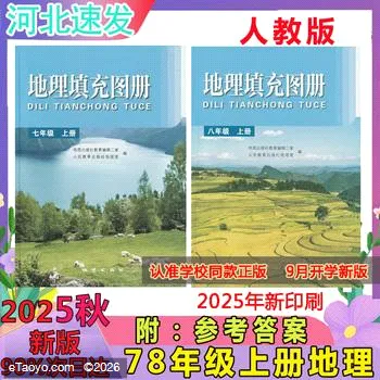 秋月新版人教版初一二年级七八年级上册下册地理填充图册含参考答案地质出版社