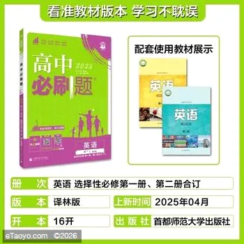 高二英语 选择性必修册、第二册合订(译林版) 高中通用 2026新版高二必刷题数学物理化学生物必修一1二2三人教版高中语文英语政治历史地理上册新教材选择性练习册教辅资料书狂k重点下册 978730833881469