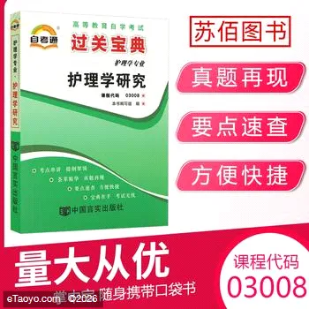自考通过关宝典 03008专升本书籍小册子3008护理学研究 2024年自学考试大专升本科专科套本教材的复习资料成人成考函授 苏佰 9787802508071