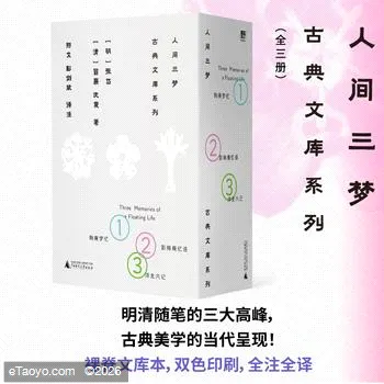 《陶庵梦忆》作者:张岱(—),明代作家,山阴(今浙江绍兴)人。他一生著述颇丰,其中不少已佚失,今可见者有《琅嬛文集》《陶庵梦忆》《西湖梦寻》《石匮书》《夜航船》等。译者:彭剑斌作家,年生,湖南桂阳人。已出版作品《我去钱德勒威尔参加舞会》《不检点与倍缠绵书》《寂静连绵的山脉》《欣泣集》。《影梅庵忆语》作者:冒襄(—),字辟疆,号巢民,明末清初的文学家,江苏如皋人。译者:羽戈,学者、作家。年毕业于西南政法大学法学院,致力于政治学与中国近代史研究。代表作《不为什么而读书》《激进之踵:戊戌变法反思录》《知识与国运:近世政治人的困惑》等。《浮生六记》作者:沈复(—约),字三白,清代文人,江苏苏州人。出身幕僚家庭,一生未仕,靠做幕客、游历为生,生活清贫却心性旷达。他以自传体散文名作《浮生六记》闻名。书中记述他与妻子陈芸的日常生活、山水游历与人生感慨,文字清淡自然,不事雕饰,却情深意真,尤以对妻子的深情书写动人。译者:羽戈,学者、作家。 年毕业于西南政法大学法学院,致力于政治学与中国近代史研究。代表作《不为什么而读书》《激进之踵:戊戌变法反思录》《知识与国运:近世政治人的困惑》等。